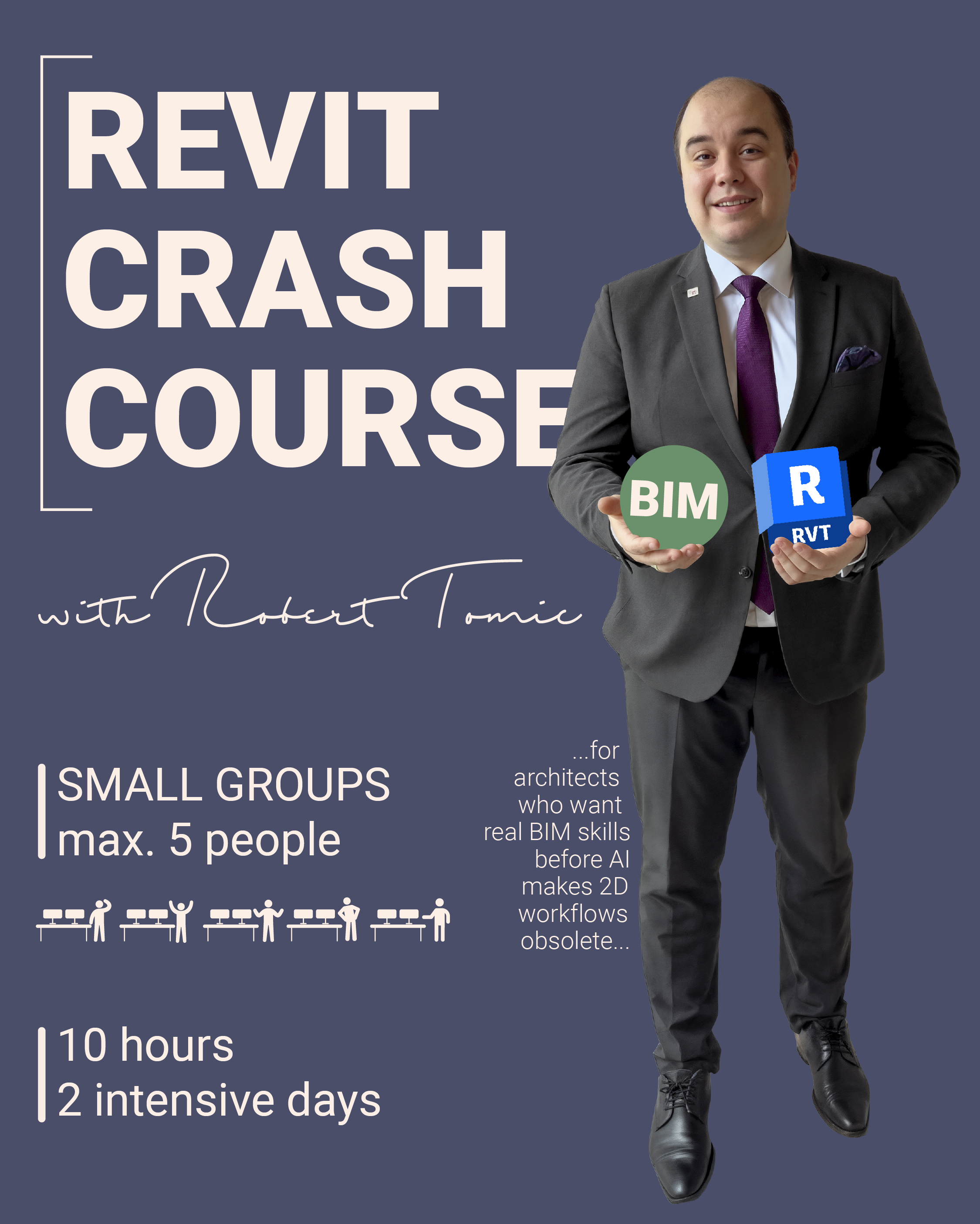 Robert Tomić is a licensed architect and co‑founder of THA ZT in Vienna. After more than a decade of designing and delivering real projects in Europe and Asia, he now teaches the BIM workflows he relies on every day in practice.